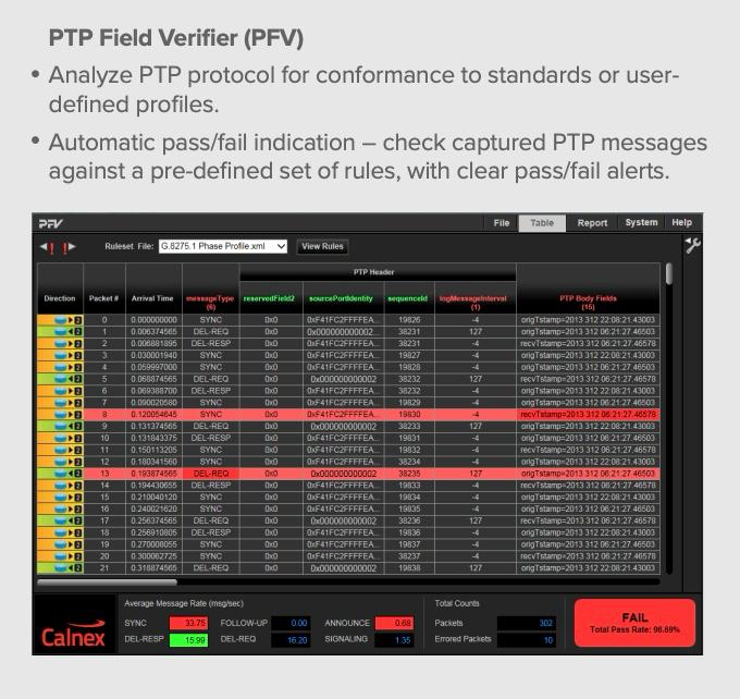 ✓ 400GbE’ye kadar veri hızlarını destekler. ✓ Tüm 5G Gelişmiş Zamanlama (Enhanced Time) gereksinimlerini karşılar. ✓ SyncE Jitter & Wander, ESMC ve PTP testlerini ITU-T G.826x / G.827x standartlarına göre doğrular. ✓ Test sonuçları ve durum bilgisi gerçek zamanlı olarak sürekli güncellenir.